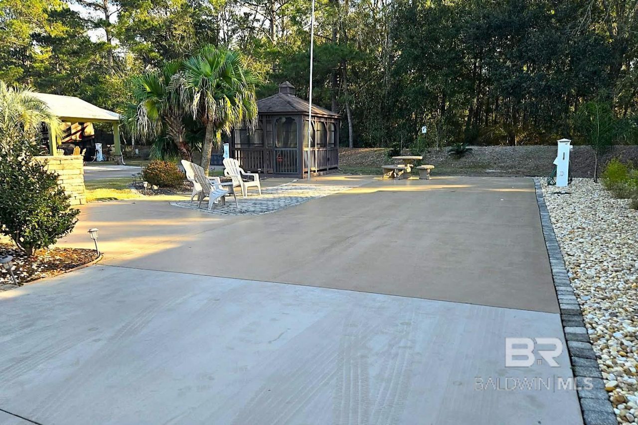 Luxury Class A (15 years or newer & 32' or greater in length) and SUPER C (10 yrs or newer & 32' or greater in length) Motor Coach Resort rated #1 in the South and in the Top 5 RV Resorts in the United States. Nestled on the resort's coveted South (back) terrace, this spacious site offers comfort and privacy. Surrounded by lush landscaping, this oversized lot features a 10' x 14' screened gazebo for outdoor enjoyment. The gazebo is raised and features interior plank flooring and Vinyl Tech windows. Inside the gazebo, relax with friends on the wicker cushioned conversation set. There is a ceiling fan and drapes that can be drawn for extra shade or privacy. The extended patio area features a cement table and benches for outdoor dining. There is an outdoor deck box for your storage needs. Other amenities include decorative patio pavers, a stacked stone privacy wall and lush irrigated landscaping. Low COA dues and property tax. Buyer to verify all information. Buyer to verify all information during due diligence.